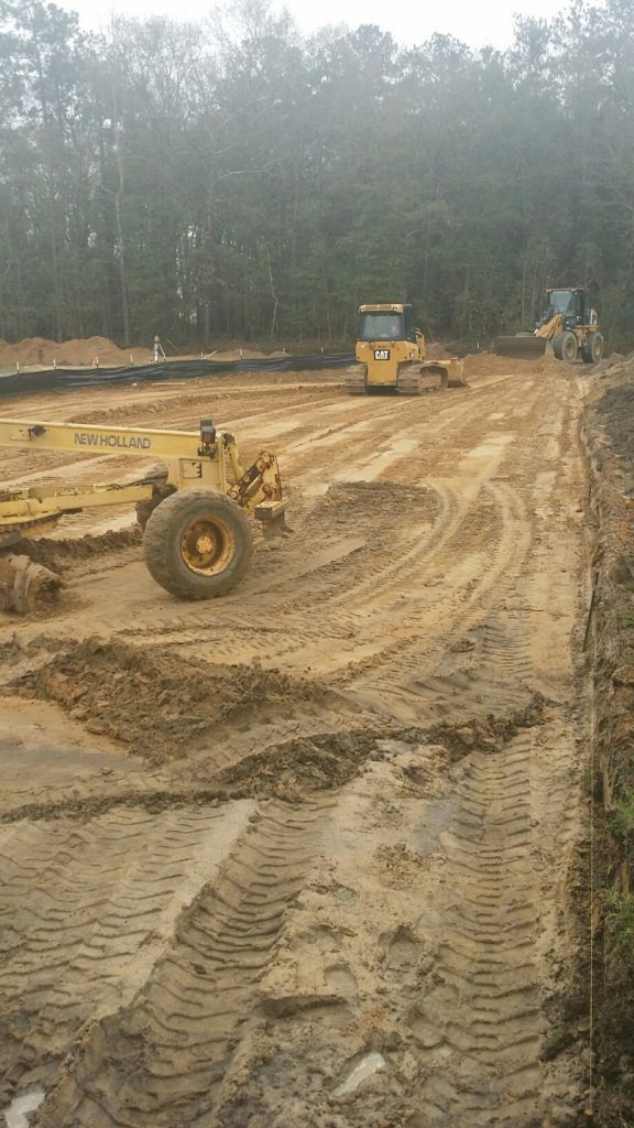 - Sitework including grading, retaining walls, and asphalt paving