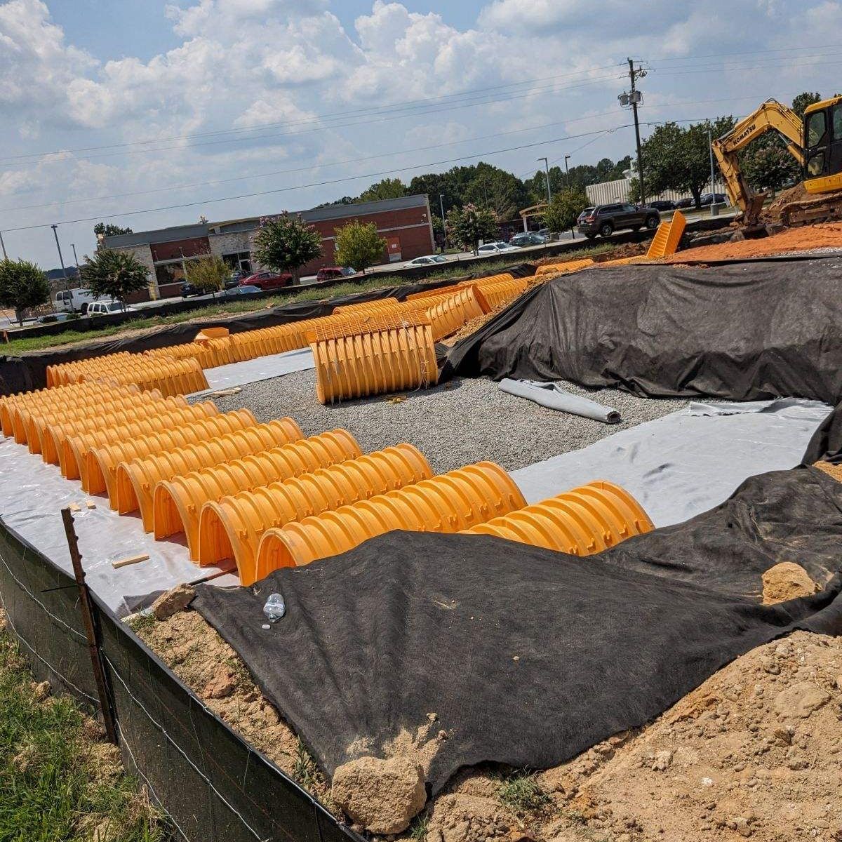 Stormwater retention and detention systems are essential for managing water runoff, particularly in urban and suburban areas. They help prevent flooding by temporarily or permanently holding excess water during heavy rainfall, reducing the strain on drainage systems and minimizing the risk of flash floods. These systems also play a critical role in controlling erosion by slowing down the flow of stormwater, which protects soils, landscapes, and natural habitats from degradation. At AJ Bright Construction, we’ve helped design, build and repair large detention systems for South Carolina communities. Learn more about stormwater management below.